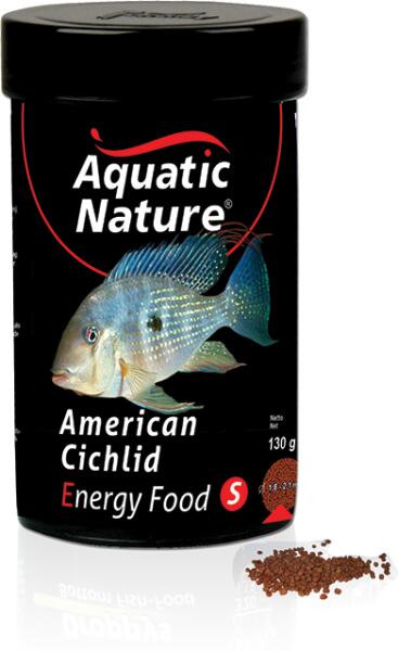 Aquatic Nature American Cichlid Energy Food S szemcsés díszhaleleség. Jól kiegyensúlyozott eledel akváriumban tartott amerikai sügérfélék számára. Kiemelkedően serkenti a növekedést, és magas ellenállóképességet biztosít a betegségekkel szemben. Kiszerelése 320 ml / 130 g. Szemcseméret: 3-4 mm.