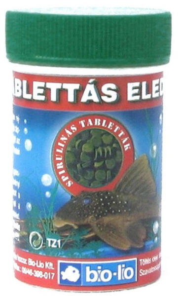 Bio-Lio Tabletta - tablettás díszhaltáp. Kétféle tabletta formájú eleség fenéklakó akváriumi halak részére. Állati és növényi fehérjéket ásványi anyagokat és vitaminokat tartalmazó készítmény. Kiválóan alkalmas a talajon lakó halak táplálására. Barna: Univerzális keverék mindenféle fenéklakó hal számára magas (39%) fehérjetartalommal. Spirulina algás: Főként a növényevő fenéklakó halak tápláléka.