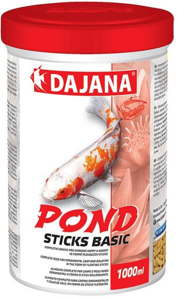Dajana Pond Sticks Basic 1000ml/90g - Teljesértékű táp tavi díszpontyok, kárászok és aranyhalak számára. Gyönyörű, egészséges, fürge halak, megfelelő színezet és kellő növekedés garantált a Dajana tavi haltápjának etetésével a kerti tavi aranyhalak és koik számára! Összetevők : Gabonafélék, halakból származó nyersanyagok, ásványi anyagok és algák. Nem szennyezi a vizet, a felszínen úszik, ezért jó követhető az elfogyasztott mennyiség. Etetési javaslat : Etessen naponta többször. Ne adjon annál többet a halaknak, mint amennyit néhány perc alatt teljesen el tudnak fogyasztani.