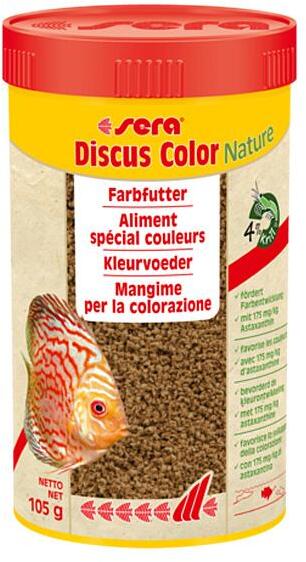 sera a bevált sera discus granulat főtáplálék mellé még kínál egy színes táplálékot a sera discus color nature-t. Ez kimondottan diszkosz halak számára kifejlesztett termék.