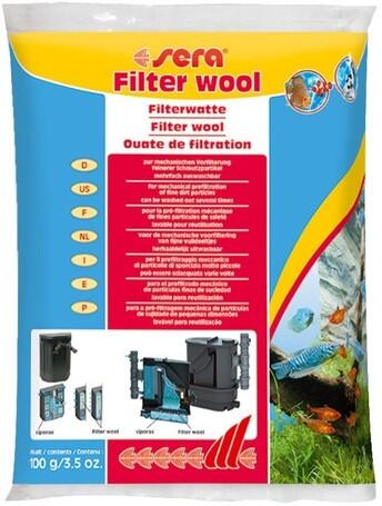 A Sera szűrővatta szűrőanyag a mechanikus előszűréshez használható, stabil szálakból áll, melyek a finomabb szennyeződéseket hosszabb időtartamon keresztül fenntartják, anélkül, hogy összeragadnának, vagy összeesnének. A Sera szűrővatta többször kimosható. Édes- és tengervíz szűrésére is alkalmas. A szűrőkben található szivacsszűrők megfelelő kiegészítője, helyettesítője! A többször kimosható szűrővatta ajánlott a finomabb tisztításért. A sera siporax-val együtt ajánljuk használni.
