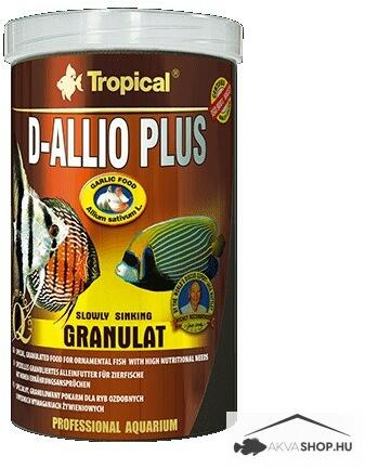Ebben az eledelben a fokhagyma régóta ismert tulajdonságait használják fel. A Tropical D-ALLIO PLUS GRANULAT természetes eredetű, kiválogatott összetevőket tartalmaz, gazdag vitaminokban és mikroelemekben. Az eledelt lehet használni más TROPICAL készítményekkel.